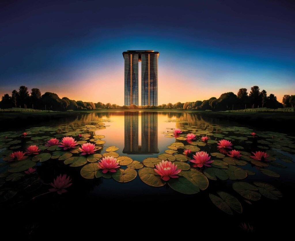 Iconic 43-Floor Twin Towers Two soaring 43-storey residential towers designed by award-winning firm Morphogenesis, offering panoramic views of the city, the central lake, and the Najafgarh Bird Sanctuary.
